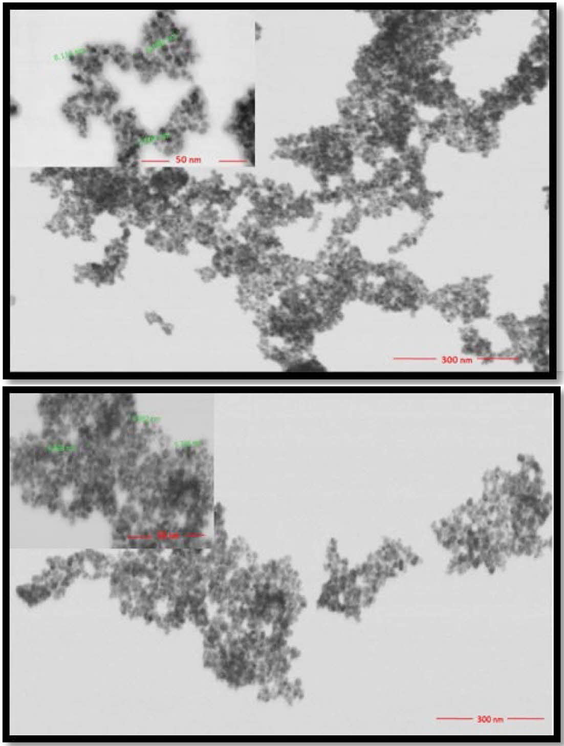 Figure 10 STEM images of (a) IONP; (b) Oleic acid coated IONP. |