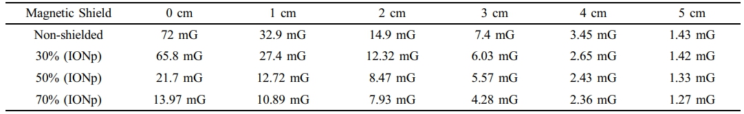 Table 1 Measurements of the Magnetic Field (B) of an Elec tric al Wire At Various Distanc es Compared to Different Amount of Iron Oxide Nanoparticle (IONp) % |