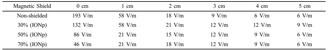 Table 2 Measurements of the Electrical Field of an Electrical Cord at Various Distances Compared to Different Magnetic Paint Solutions |