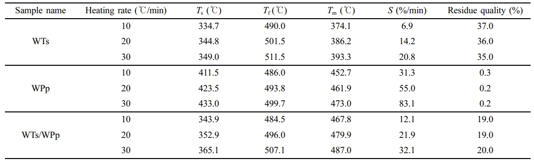Table 2 Pyrolytic Properties of WPp, WTs, and WTs/WPp |