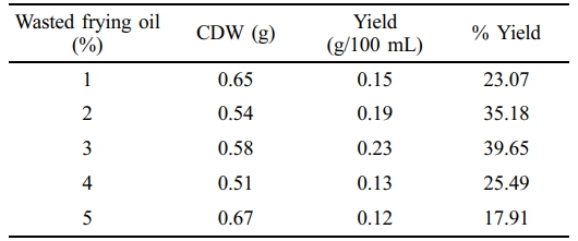 Table 6 PHA Yield fro m NB at Different Co ncentratio ns o f Wasted Edible Oil Supplement |