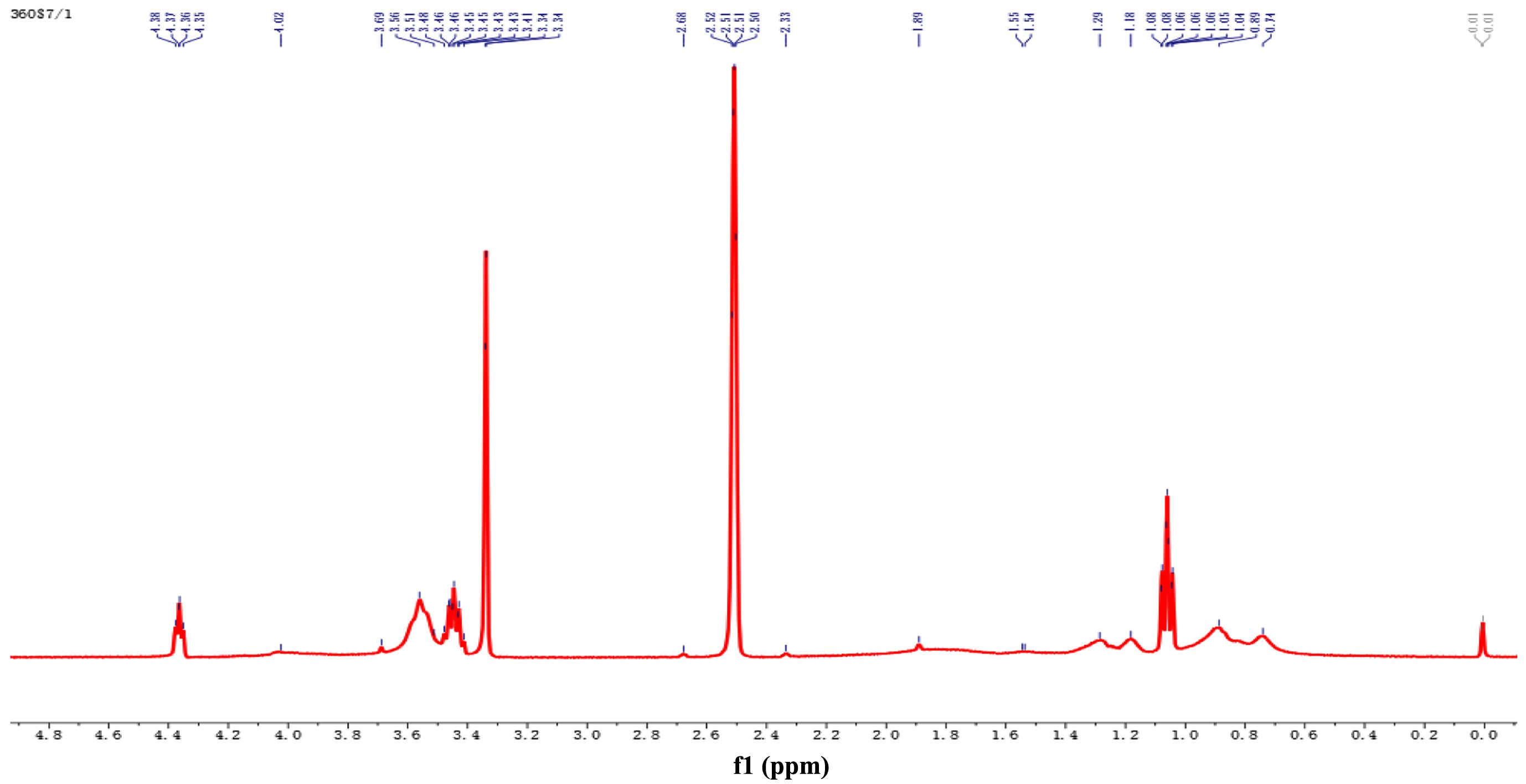Proton Nuclear Magnetic Resonance Spectrum Analysis: 1H NMR spectroscopy analysis reflects the nuclear magnetic resonance effect of 1H in a molecule. This method can be used to determine molecular structure. When a sample contains hydrogen, especially the isotope 1H, 1H NMR spectroscopy can be used to determine the structure of the molecule. The 1H isotope is also called protium. A simple hydrogen spectrum can be derived from a solution containing the sample. To avoid the interference of protons in the solvent, deuterated solvents are usually used. Deuterated dimethylsulfoxide (DMSO) was selected for this study.