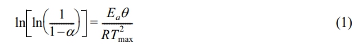 여기서, Tmax는 최대분해 속도 온도, a는 분해분율, Ea는 열분해 활성화 에너지, q = T - Tmax, R은 이상기체상수이다.