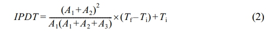 한편, Doyle은 TGA결과 그래프를 여러 구간으로 나눈 뒤 그 면적비를 이용하여 적분 열분해 진행 온도(integral procedural decomposition temperature, IPDT)를 식 (2)와 같이 제안하였고 개략도를 Figure 9에 나타내었다.19,20